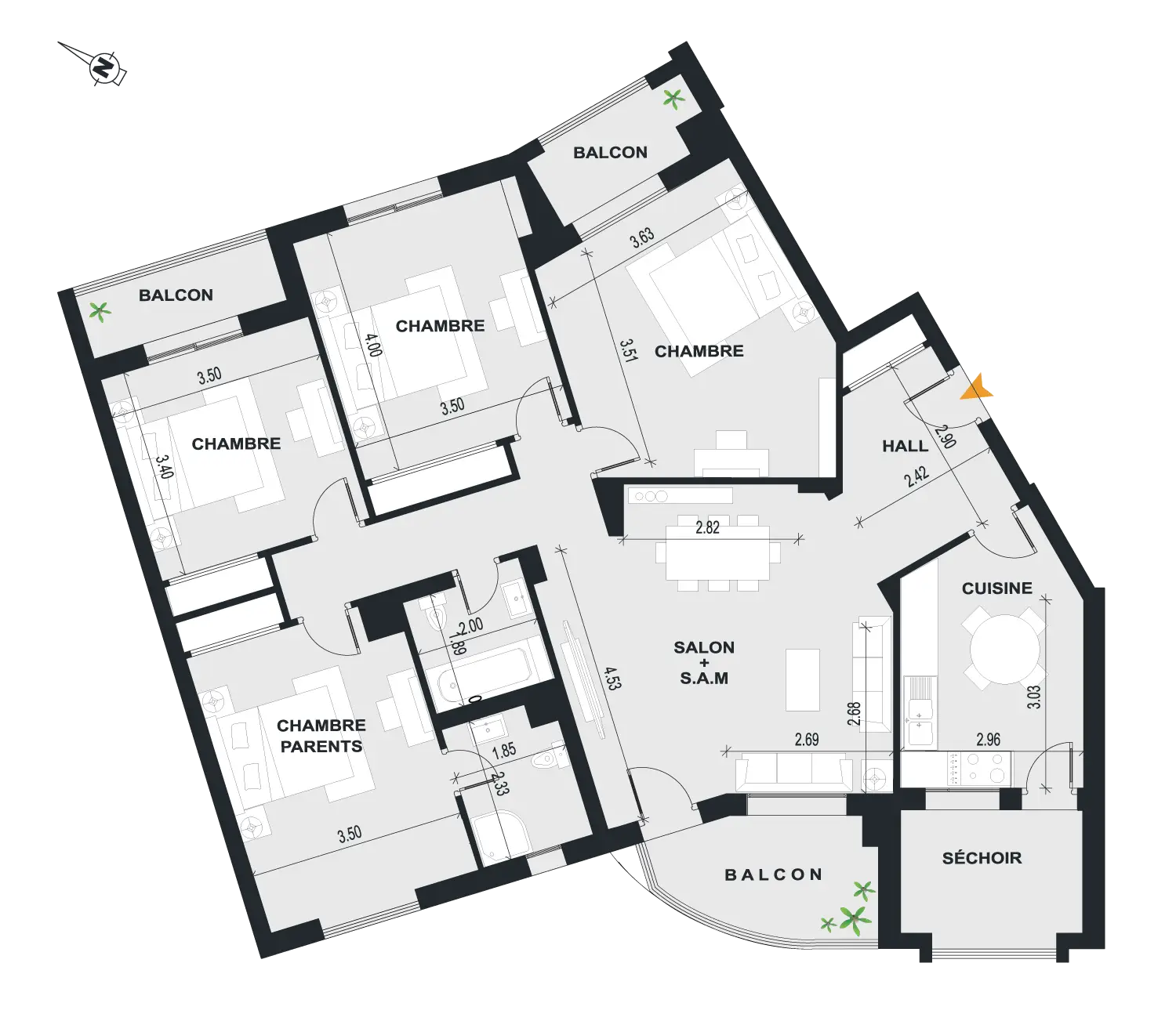 | Appartements | S+4 |